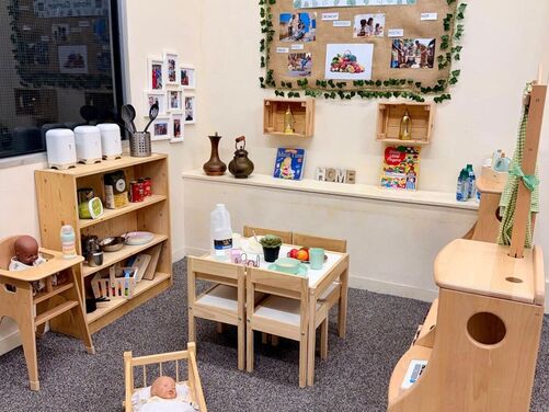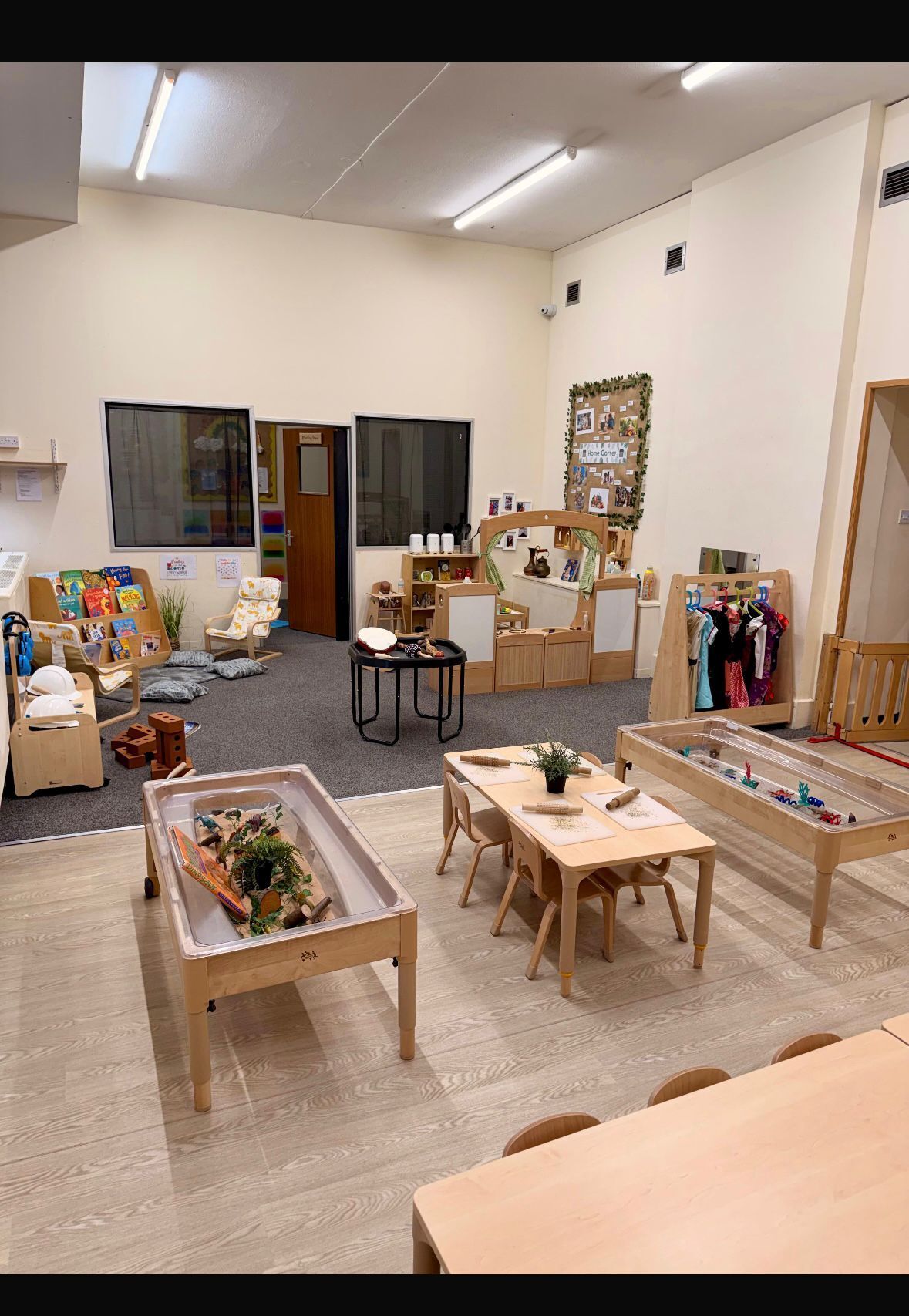 Our Nursery room caters for 18 children ages 2 years to 3 years. The Nursery area includes a role play area, construction area and a cosy area as well as a creative and messy play area. We recognise that our toddlers are becoming more independent, and this is supported by the staff within the area. We ensure that Nursery's resources include a range of diverse resources inside and also outside in our garden area. The nappy changing facility and the toilet is within a private area off the Nursery room. The ratio within our Nursery room is 1 staff to 4 children and this is always met.